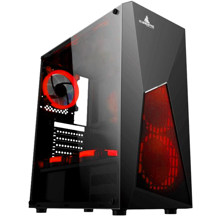 The case was build thinking on high air flow inside the system, thats why it includes three 15 red leds fans. The power supplu unit rest isolated from the system with a cover at the bottom of the case.